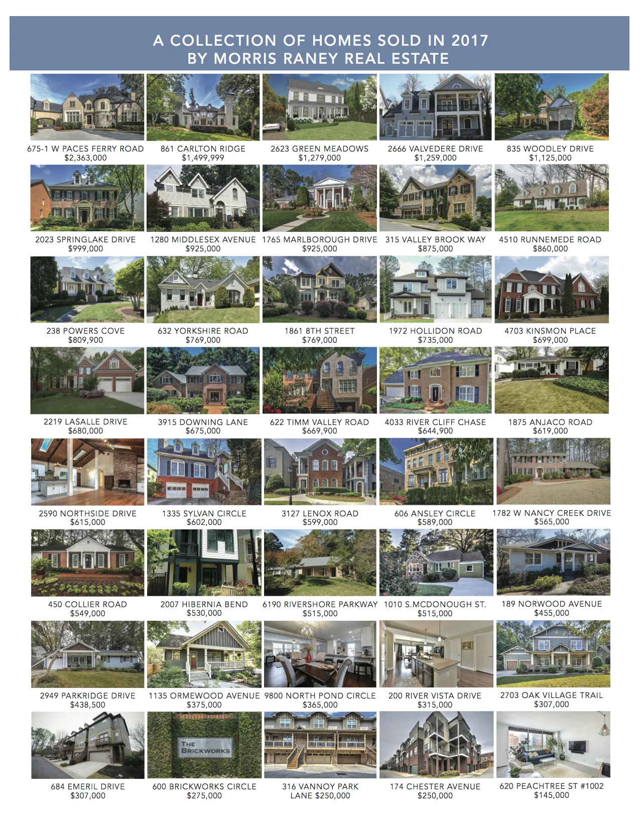 The Morris Raney Real Estate team is celebrating helping over 90 buyers and sellers in 2017! We are so grateful for our friends, family, neighbors, clients, and everyone who made it our best year yet. Our collection of homes included communities all around Atlanta - Buckhead, Brookhaven, Sandy Springs, Chastain Park, Ansley Park, Virginia Highland, Morningside, Inman Park, Kirkwood, Decatur, Vinings, East Cobb, Dunwoody, Roswell, Alpharetta, and more!